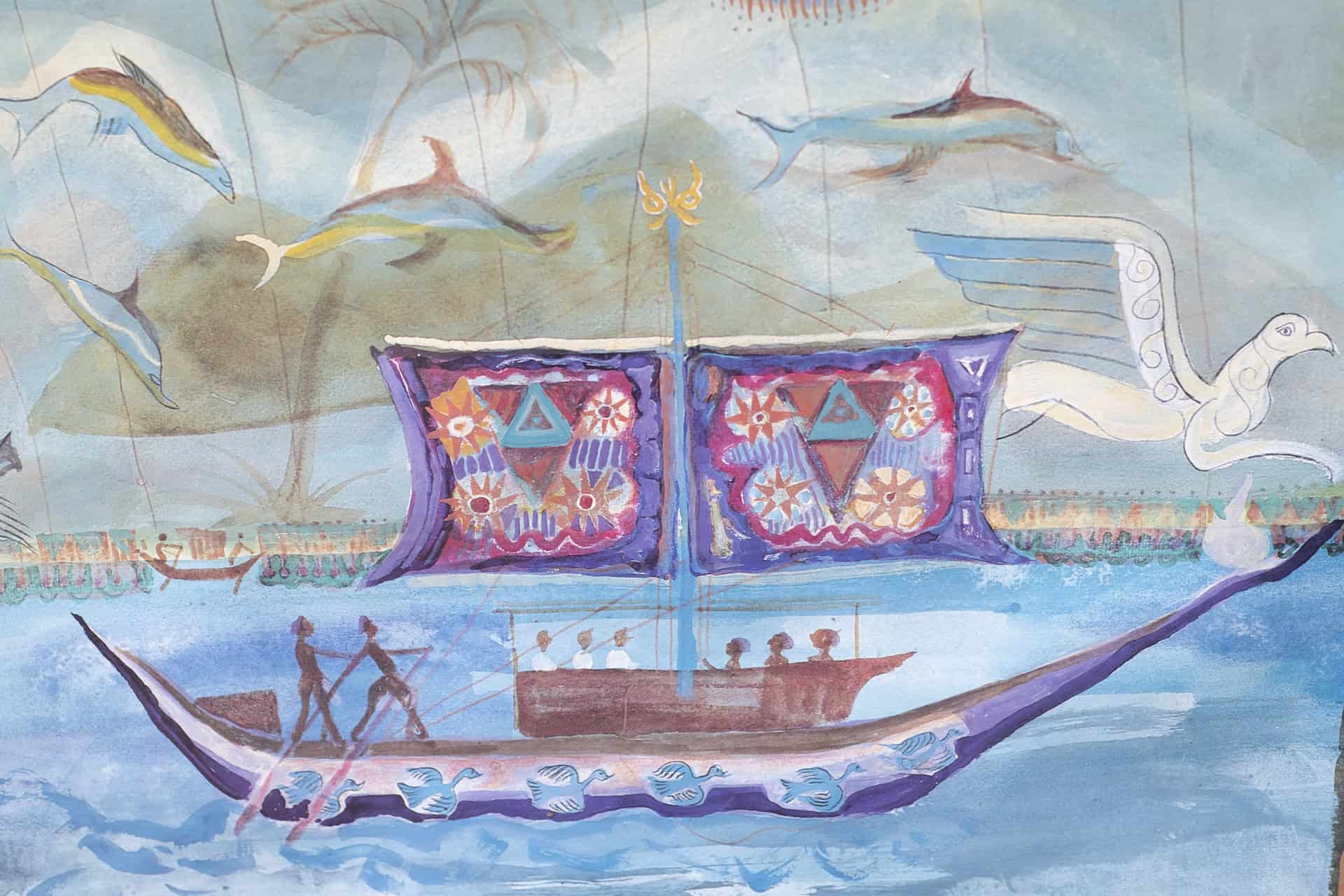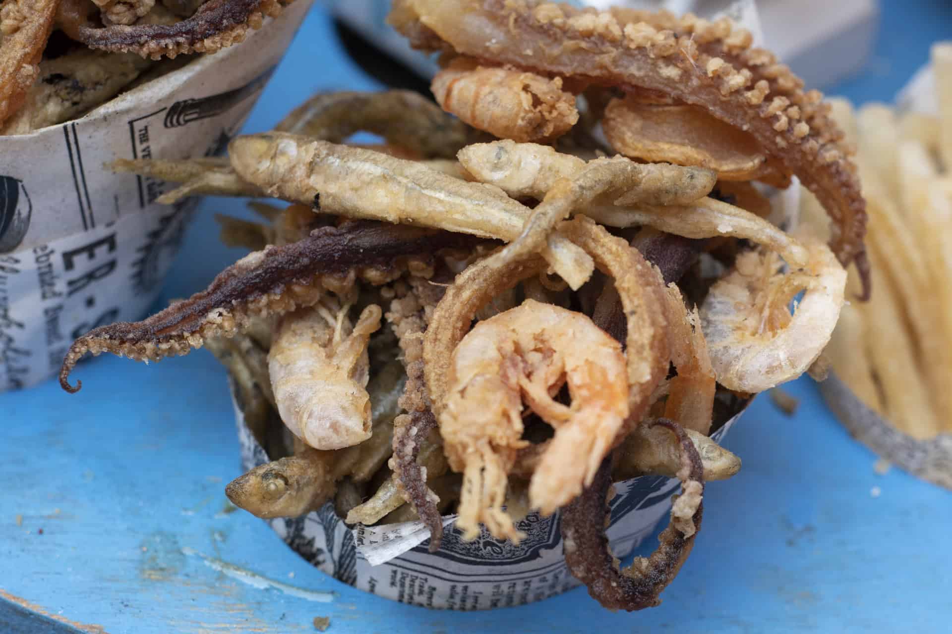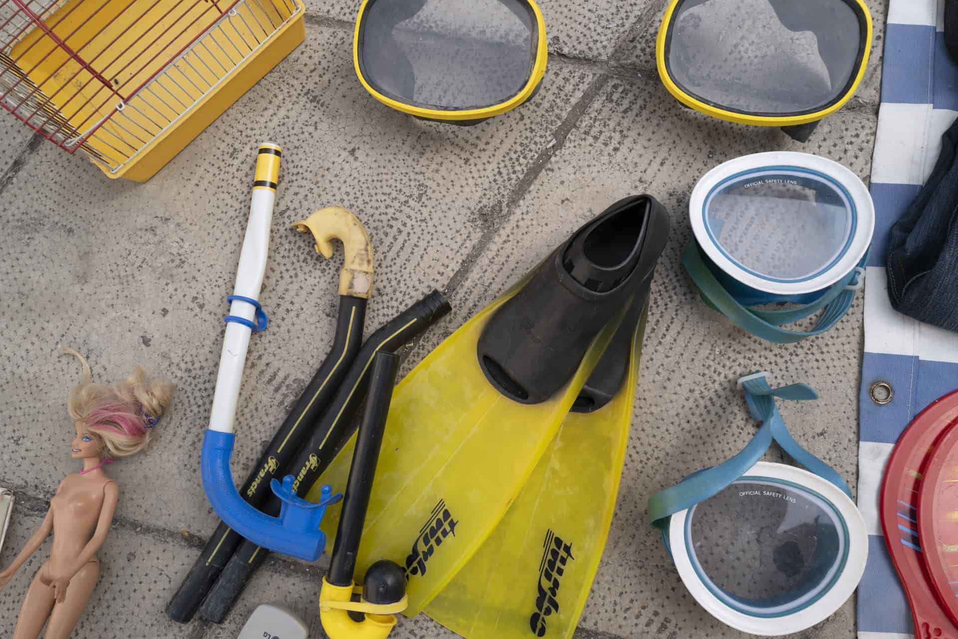 And then, there it was. The first trace: a closed shop with a deep blue sea painted on its shutter. And then more: a forgotten beach umbrella, fried seafood served in a paper cone, a boat drawn on a wall, used fins and masks for sale on a sidewalk.