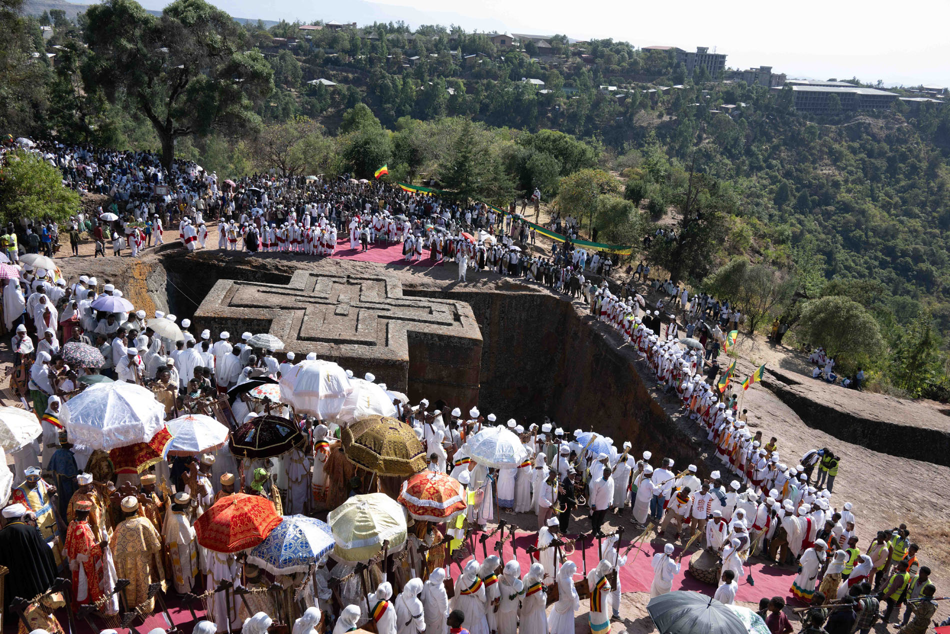 Beyond the celebration, daily faith emerges. In ancient churches carved into the rock, the veiled faces of Ethiopian women, marked by time, tell stories of uninterrupted devotion and gazes that look toward the infinite.