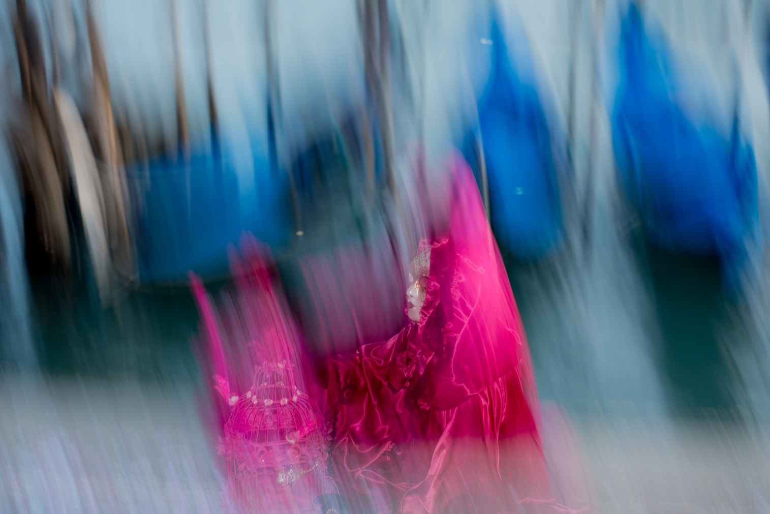 Questo progetto fotografico su Venezia, “Venezia Sbattuta”, è realizzato durante il Carnevale e utilizza la tecnica ICM (Intentional Camera Movement) come strumento espressivo. Le immagini non cercano la rappresentazione iconica o riconoscibile della città, ma lavorano sul movimento, sulla perdita di nitidezza e sull’eccesso visivo per mettere in crisi l’immagine ordinata di Venezia. Il Carnevale diventa il contesto ideale per sciogliere forme e identità, trasformando la città in uno spazio instabile, dove la fotografia tenta di disturbare ciò che sembra già visto e immobile.